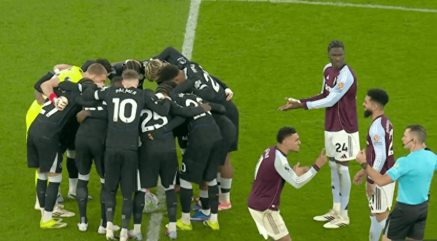 切尔西中场集合喊话惹争议,维拉球员不干了:凭啥在中圈瞎鼓捣?